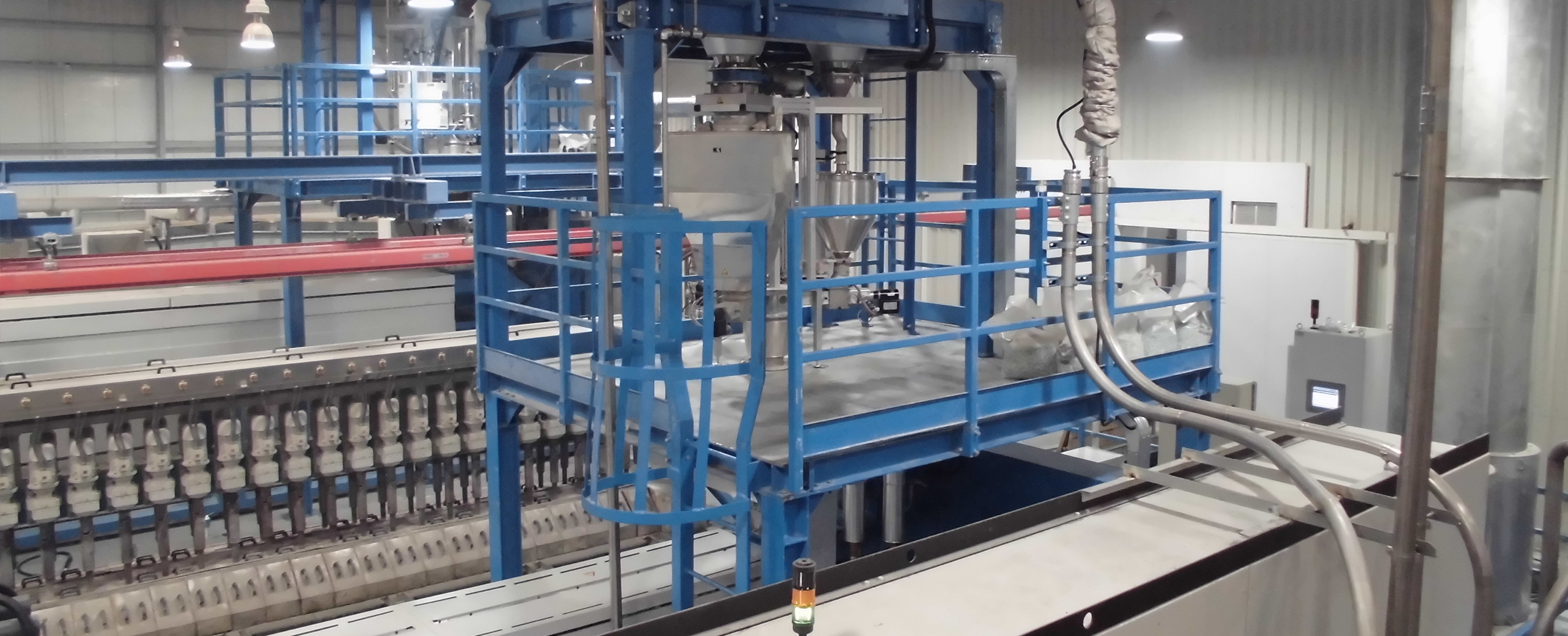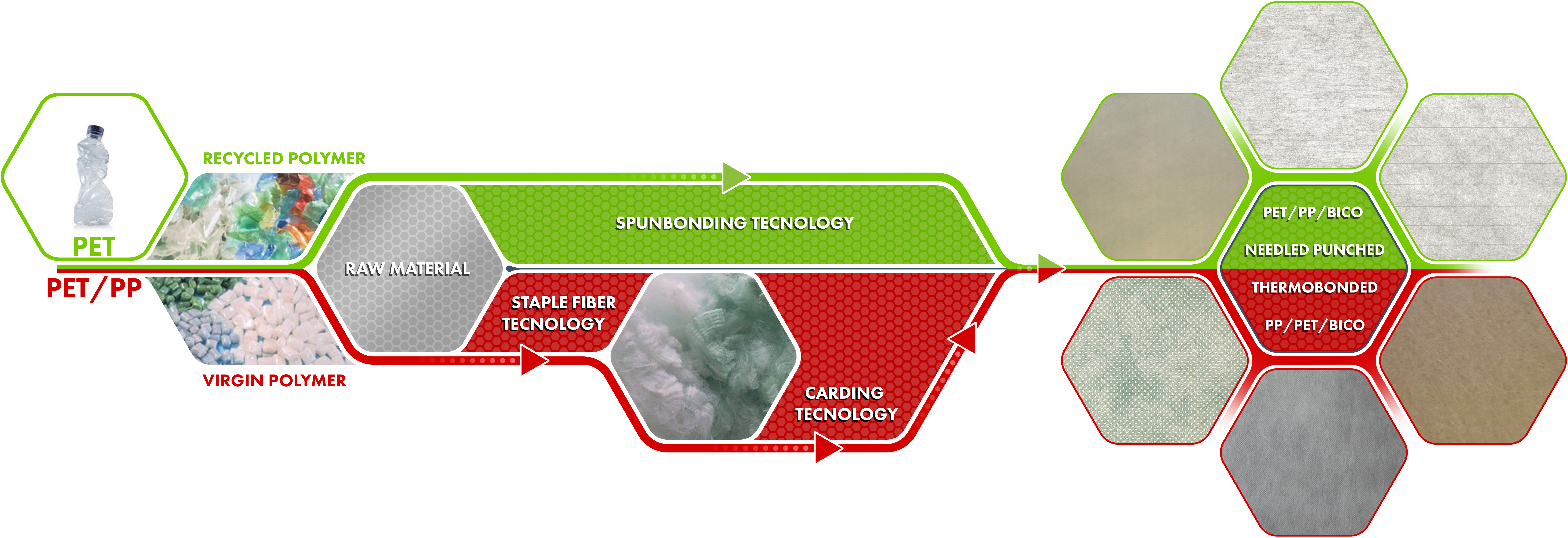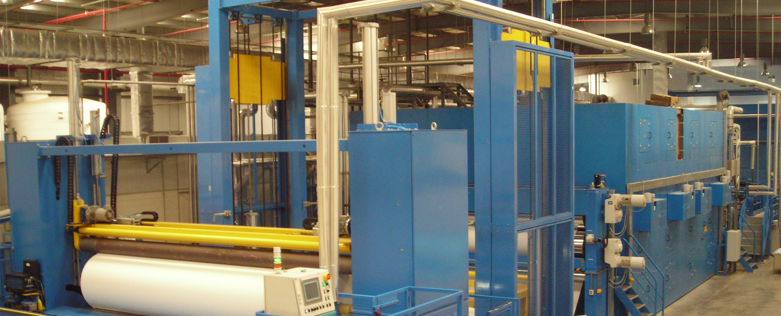 PET Spunbonding line for the production of geotextiles and supports for roofing membranes.